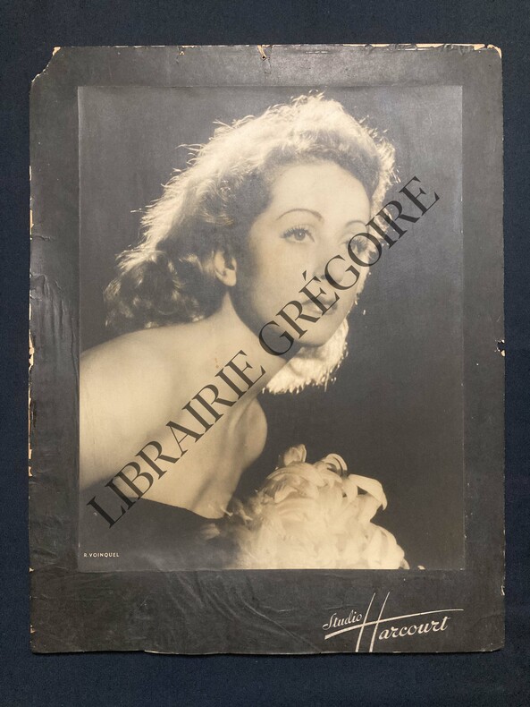 TIRAGE ARGENTIQUE NOIR ET BLANC SIGNE RAYMOND VOINQUEL MONTE SUR CARTON DE PRESENTATION DES STUDIOS HARCOURT-VERS 1950-49 CM X 63 CM-MANQUE COIN SUP GAUCHE-(DG25)