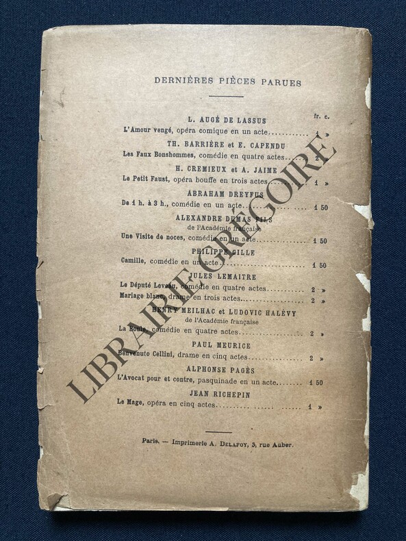 COMEDIE REPRESENTEE POUR LA PREMIERE FOIS AU THEATRE DU VAUDEVILLE LE 22 FEVRIER 1892-132 PAGES-13 CM X 19 CM-MANQUES EN DOS-INTERIEUR FRAIS-(JDG7)