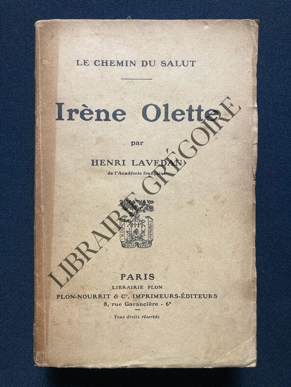 Titre : Irène Olette - Deux rivaux Auteur : Lavedan Henri Éditeur : Librairie Plon - Les Petits-Fils de Plon et Nourrit Lieu et date : Paris, 1920 Collection : Bibliothèque reliée Plon, n° 193 Reliure : Demi-toile bleue à coins, plats papier marbré, dos lisse, sans jaquette Format : In-12 approx. 18 x 12 cm Langue : Français Particularités : Volume réunissant deux romans de l'auteur - Irène Olette et Deux rivaux État du livre : Bon état d'usage. Cartonnage solide, légers frottements aux mors et aux coins, infimes épidermures sur le papier marbré. Intérieur propre, papier uniformément jauni avec quelques rousseurs éparses, cahiers bien serrés. Sans annotations ni tampons visibles Description : Jolie édition reliée de ces deux romans de Henri Lavedan, publiée dans la série Bibliothèque reliée Plon. Un exemplaire agréable en demi-toile bleue à coins, au format de poche ancien