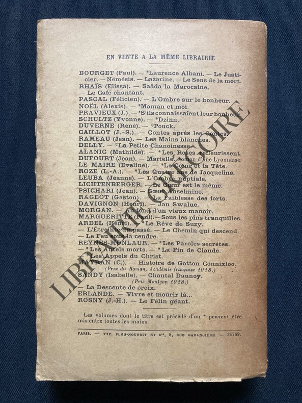 462 PAGES-12,2 CM X 19 CM-ENVOI DE L'AUTEUR AU ROMANCIER ET CRITIQUE LITTERAIRE JACQUES DES GACHONS:"A MR JACQUES DES GACHONS AVEC MES MEILLEURS SENTIMENTS DE CORDIALITE CONFRATERNELLE." SIGNATURE-TROUS D'INSECTES EN MARGE INF DES PREMIERES PAGES-(JDG7)