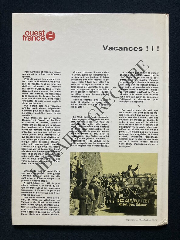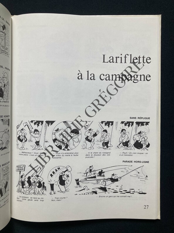 Ouest-France Lariflette Album cartonné 1977 In-4 (22 x 29,7 cm), album cartonné, premier plat illustré en couleurs, 60 pages, vignettes noir et blanc ; réparation au ruban adhésif à cheval sur le dos en queue, coins et coiffes frottées, gribouillages au crayon à papier effacés en début et fin d'ouvrage, par ailleurs assez bon état général. Livraison a domicile (La Poste) ou en Mondial Relay sur simple demande.