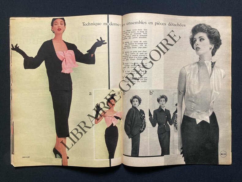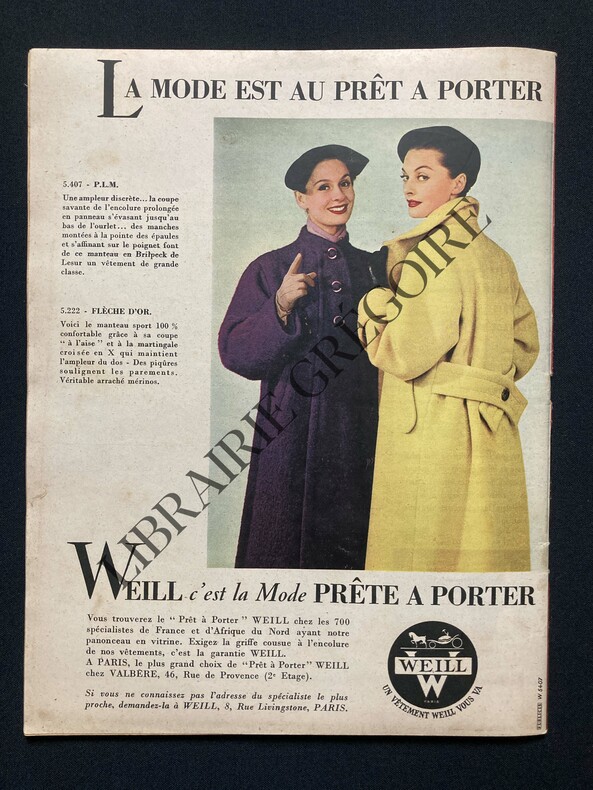 68 PAGES-23,7 CM X 30,7 CM-EN COUVERTURE TAILLEUR BALENCIAGA-CECIL BEATON POUR BIJOUX BURMA-EXPOSITION GEORGES ROUAULT, MUSEE D'ART MODERNE-STOP! VOICI LE NOUVEAU CODE DE LA MODE, ATTENTION! PRIORITE AU NOIR, PLACE AUX TAILLEURS A FOURRURE, LES MANTEAUX ANTI-GEL,LE TWEED: DEMARRAGE SPECTACULAIRE-CATHERINE PARIS, PAR LA PRINCESSE BIBESCO-NERVEUSES, DYNAMIQUES, LEGERES.LES ROBES QUI TOURNENT ROND-TECHNIQUE MODERNE: LES ENSEMBLES EN PIECES DETACHEES-6 MANIERES D'ASSURER SON ELEGANCES-COUP D'ACCELERATEURS: LES ECHARPES PRENNENT GRANDE ALLURE-