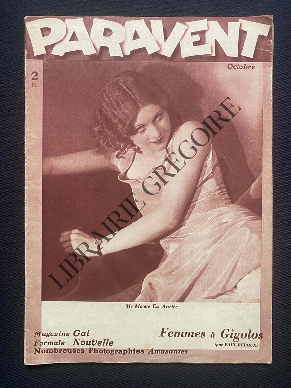 PARAVENT. 1933. In-8. Broché. Etat d'usage, Couv. convenable, Dos abîmé, Intérieur frais. environ 30 pages augmentées de nombreuses photos monochromes dans et hors texte. . . . Classification Dewey : 704.948-Erotisme