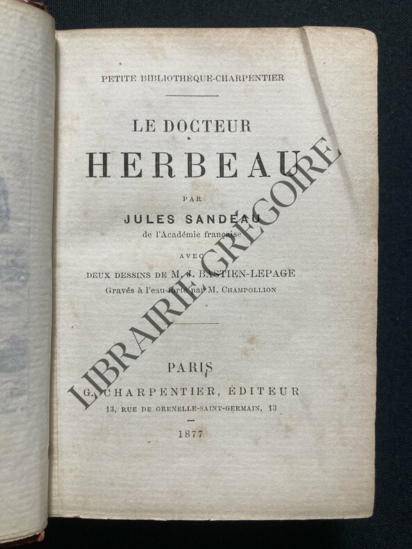 Nouvelle édition illustrée de deux dessins de J. Bastien-Lepage gravés à l'eau-forte par M. Champollion. Reliure d'époque en demi-basane rouge à coins, dos à cinq nerfs orné de doubles caissons, de fers et de filets dorés en tête et en queue et soulignant les nerfs, date dorée en queue, plats, contreplats et gardes de papier à la cuve, doubles filets dorés sur les plats, tête dorée. Petites égratignures sur les plats, un coin frotté, coupes très légèrement frottées, rousseurs. - Photographies et détails sur www.Edition-Originale.com -