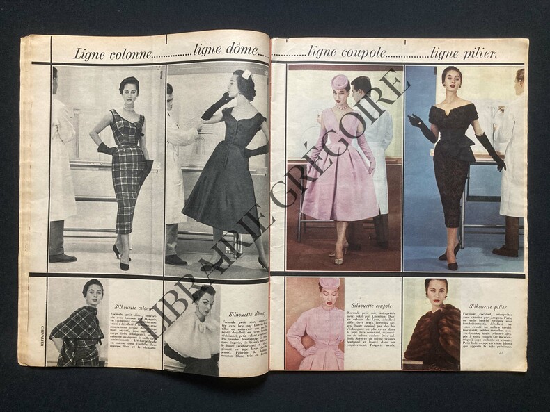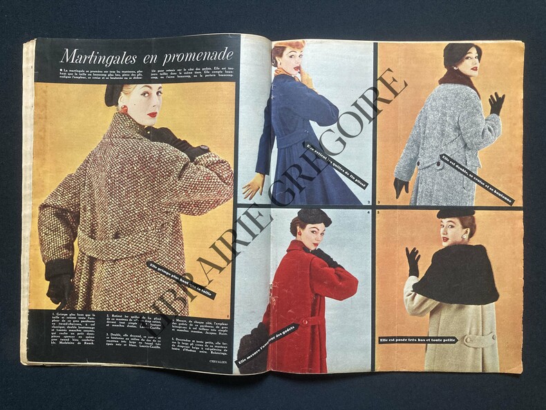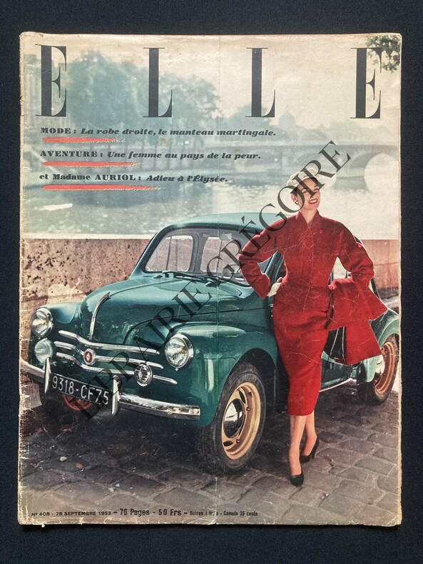 EN COUVERTURE "TAILLEUR-VOITURE" LANVIN-CASTILLO ET RENAULT 4 CV-QUINZAINE DE LA LAINE, DESSIN DE GRUAU-LE PHOTOGRAPHE DE LA COUR D'ANGLETERRE: VOICI LES PLUS JOLIES FILLES DE LONDRES, 8 PHOTOS-MON VOYAGE AU PAYS DE LA PEUR, PAR MICHELE KESSEL, MAU MAU-DECOLLETE EN TRIANGLE, EPAULE EN ROND, MANTEAU AU CARRE C'EST LA MODE TIRE-LIGNE, LIGNE COLONNE, LIGNE DOME, LIGNE COUPOLE, LIGNE PILIER, 4 PAGES-ET TOUJOURS LA LIGNE DROITE-MARTINGALES EN PROMENADE, 2 PAGES,5 PHOTOS COULEURS-PORTRAITS DES "PREMIERES DAMES" CONTEMPORAINES ELYSEE: QUE PENSE MADAME AURIOL?, PAR RENEE PIERRE GOSSET-DIX MODELES HORS LIGNE, 2 PAGES, 20 DESSINS-MICHELE ALFA POUR PUBLICITE SAVON LUX
