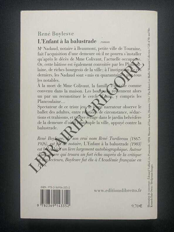 Sans date. René boylesve: L'enfant a la balustrade/ Collection Pourpre