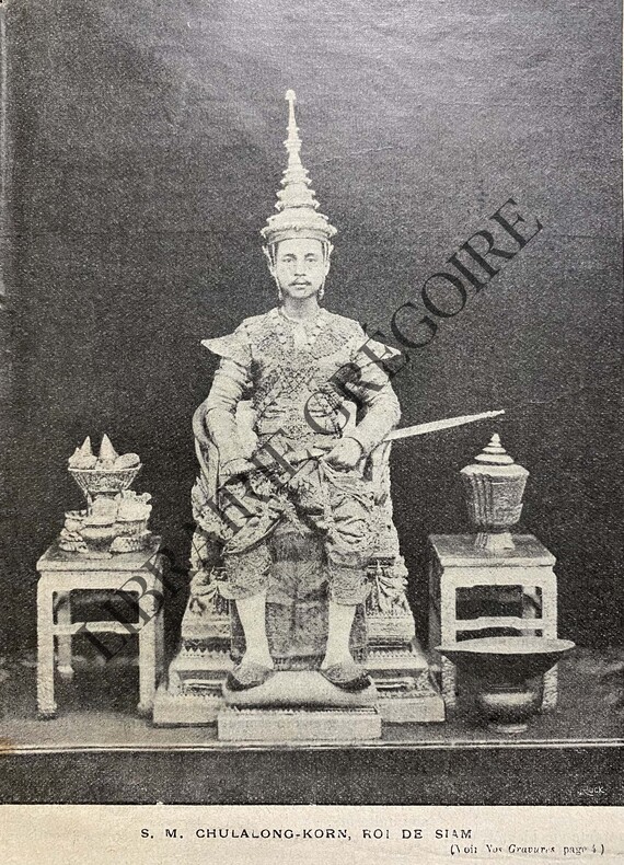 18 PAGES-27,5 CM X 32 CM-4 PHOTOS (REINE DE SIAM-ROI DE SIAM-UN DES FILS DU ROI DE SIAM-BANGKOK LE MENAM ET LE PALAIS DU ROI), LEGENDE 12 LIGNES SUR 1 COL
