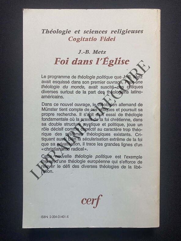 COLLECTION COGITATIO FIDEI-N°99-TRADUIT DE L'ALLEMAND PAR PAUL CORSET ET JEAN-LOUIS SCHLEGEL-PETIT IN 8-272 PAGES-(LI1125)