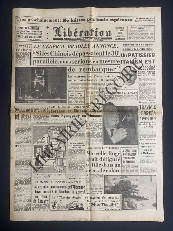 6 PAGES-43 CM X 60 CM-EN UNE: LA CATASTROPHE DU CHALUTIER "NOTRE-DAME-DE-PEYRAGUDE", PHOTO-P2: DEUX DEBUTS THEATRAUX: ANDRE GIDE AU FRANCAIS ODETTE JOYEUX AUX MATHURINS-P4: LA VIE LITTERAIRE, PAR CLAUDE ROY: SE METTRE AU VERT ET AU PREVERT, QUART DE PAGE-P6: JEAN PORTAL SOUPCONNE EST ACQUITTE MAIS JUSTICE N'EST PAS FAITE