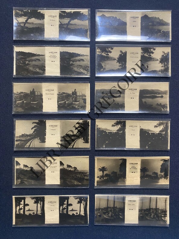 12 POSITIFS STEREOSCOPIQUES SUR FILM-SANS DATE (VERS 1950)-4,5 CM X 10,7 CM-STE MAXIME-COIN DE MER ENTRE STE MAXIME ET ST AYGULF-PORT DE SAINT-RAPHAEL-ST RAPHAEL-VUE SUR LE DRAMONT ET L'ILE D'OR- L'ILE D'OR-ANTHEOR-ECHAPPEE SUR LA MER!-LE TRAYAS-THEOULE-CANNES: PROMENADE DE LA CROISETTE-CANNES: LE PORT-DANS BOITE EN CARTON D'ORIGINE-(E1125)