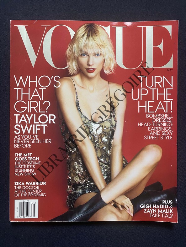 FORMAT 22,5 CM X 27,5 CM-262 PAGES-EN COUVERTURE : TAYLOR SWIFT PHOTOGRAPHIEE PAR MERT ALAS ET MARCUS PIGGOTT-FULL CONTROL, TEXTE DE JASON GAY, PHOTOS DE MERT ALAS ET MARCUS PIGGOTT AVEC TAYLOR SWIFT, 10P-CHECK MATE, PHOTOS DE MARIO TESTINO AVEC ZAYN MALIK ET GIGI HADID, 14P-AN EYE FOR ALL SEASONS, TEXTE DE NATHAN HELLER, RENCONTRE AVEC ANDREW BOLTON AU COSTUME INSTITUTE DU MET, PHOTOS D'ANNIE LEIBOVITZ, 10P-BRAND NEW SONG AND DANCE, PHOTOS D'ANTON CORBIJN, 4P-SPECIAL FORCES, PHOTOS DE MERT ALAS ET MARCUS PIGGOTT, 6P-EAR TO EAR, PHOTOS DE PATRICK DEMARCHELIER AVEC TAYLOR SWIFT, ZOE KRAVITZ ET LIZZY PLAPINGER, IMAAN HAMMAM, CL, GRACE HARTZEL, TINASHE, KARLIE KLOSS, VANESSA AXENTE ET FEI FEI SUN, 8P-(PG)