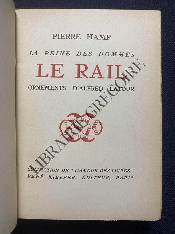 Pierre Hamp (1876-1962), pseudonyme de Henri Bourillon, a travaillé un temps, comme commis aux écritures de la Compagnie des Chemins de Fer du Nord. “Le Rail” décrit la vie d'un grand noeud ferroviaire du nord de la France, les événements qui y surviennent et les hommes qui y travaillent. Il est l'auteur d'une quarantaine d'ouvrages sur la condition ouvrière et son époque ; le surtitre La Peine des hommes réunissant la plupart d'entre eux. Bon état d’occasion