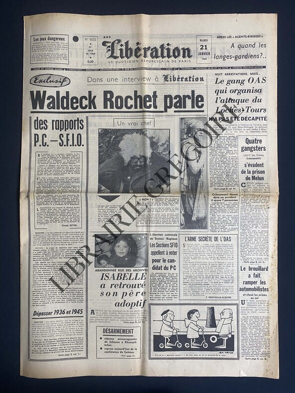 8 PAGES-43 CM X 60 CM-EN UNE: WALDECK ROCHET PARLE DES RAPPORTS PC-SFIO, SUITE P2-P3: DU NOUVEAU SUR LE DESARMEMENT?-P6: LA CHRONIQUE DE CLAUDE ROY: "PASSAGES", DE HENRI MICHAUX-LE MUSIC-HALL: JACQUELINE FRANCOIS A BOBINO, PHOTO-LUPOVICI PRESENTE GARCIA LORCA, THEATRE 347 PARIS, PHOTO ("LE RIDEAU" DE PICASSO)-P7: LE CIRQUE: GRANDE EXHIBITION BOUGLIONE AU CIRQUE DE MONTMARTRE