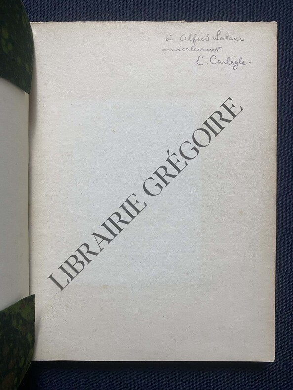 110 PAGES-15 CM X 20,5 CM-4 CARTES EN FIN D'OUVRAGE DONT 1 DEPLIANTE-1 GRAPHIQUE EN FIN D'OUVRAGE-ENVOI DE CARLEGLE A ALFRED LATOUR-LIVRE ACCOMPAGNE D'UN COURRIER DACTYLOGRAPHIE DES ETABLISSEMENTS NICOLAS-RELIURE A COUVERTURE DE VELOURS-(20F)
