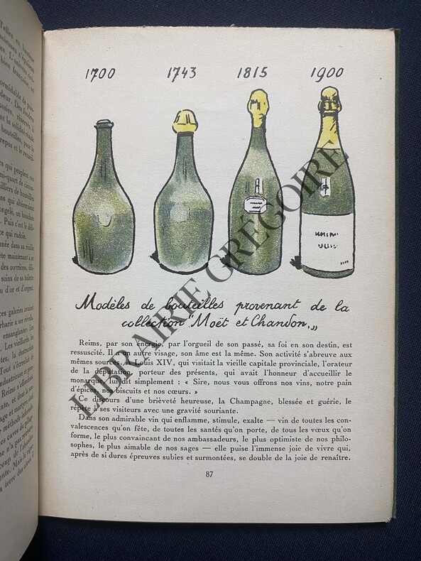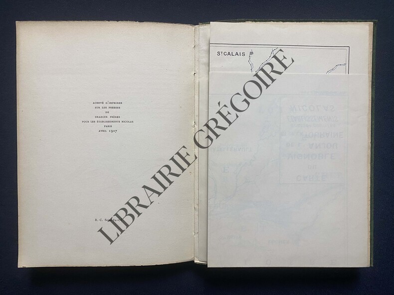 Paris Edité par Les Etablissements Nicolas 1927 in 8 (20x14,5) 1 volume broché, couverture façon suédine verte marbrée rempliée, titrée en lettres dorée sur le plat supérieur, 72 pages, avec des illustrations en couleurs de Carlègle (Charles-Emile Egli, dit), avec 1 tableau et 3 cartes dépliantes dont une grande en couleurs, petite restauration ancienne au dos de la couverture. Joint un dépliant publicitaire illustré: Un Art de France, le savoir boire. Bel exemplaire ( Photographies sur demande / We can send pictures of this book on simple request )
