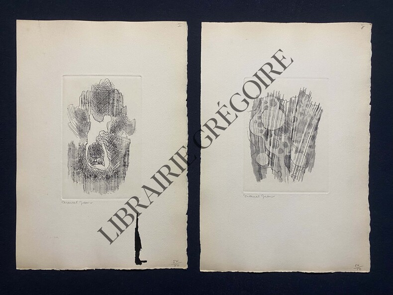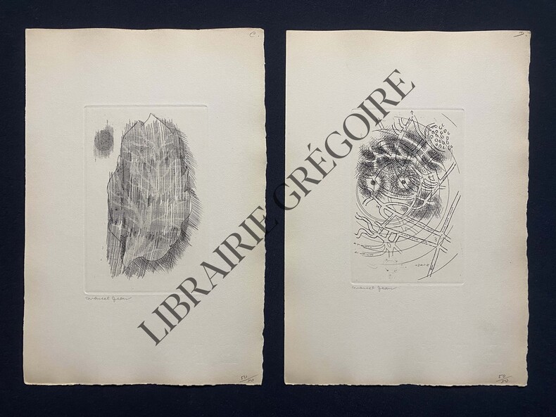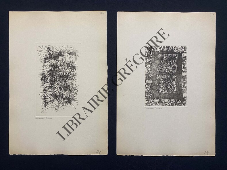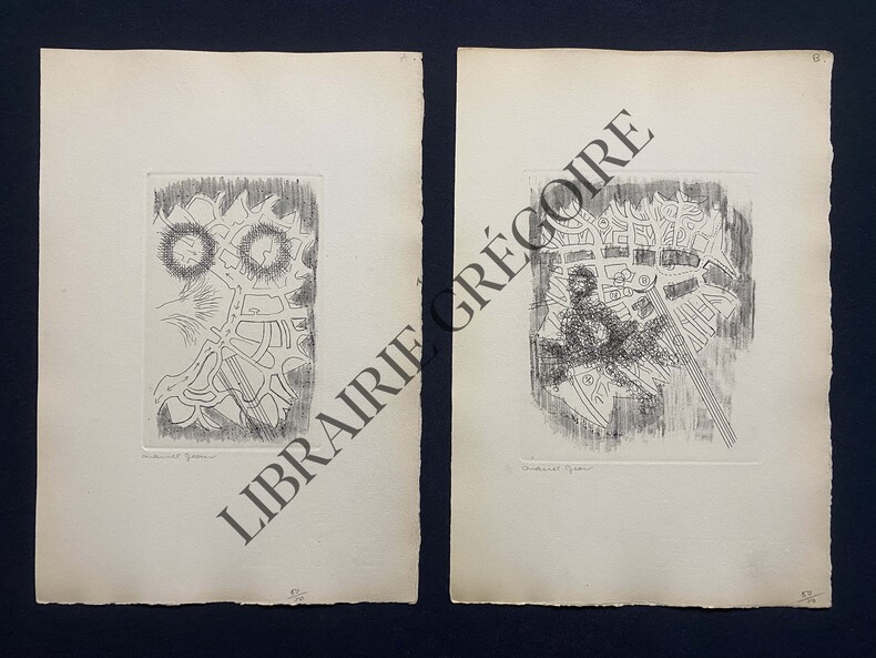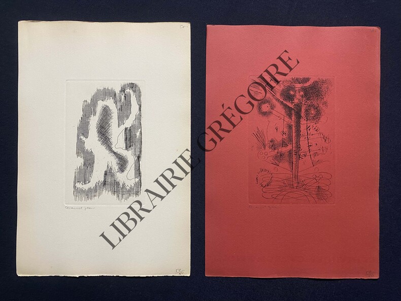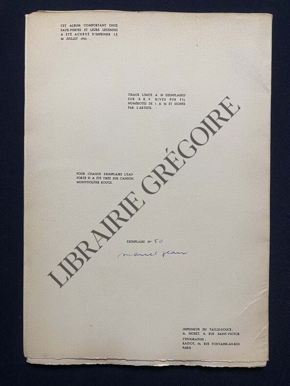 ALBUM COMPORTANT 11 EAUX-FORTES ET LEURS LEGENDES-TIRAGE LIMITE A 50 EXEMPLAIRES SUR RIVES PUR FIL NUMEROTES DE 1 A 50 ET SIGNES PAR L'ARTISTE-L'EAU FORTE H A ETE TIREE SUR CANSON MOLGOLFIER ROUGE-EXEMPLAIRE N°50-19,5 CM X 28 CM-(BEC25)