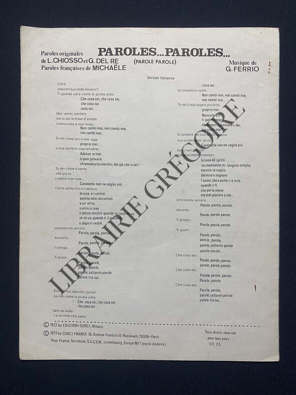 6 PAGES-21,5 CM X 27,5 CM-PARTITION-PAROLES FRANCAISES-PAROLES ITALIENNES-(E24)