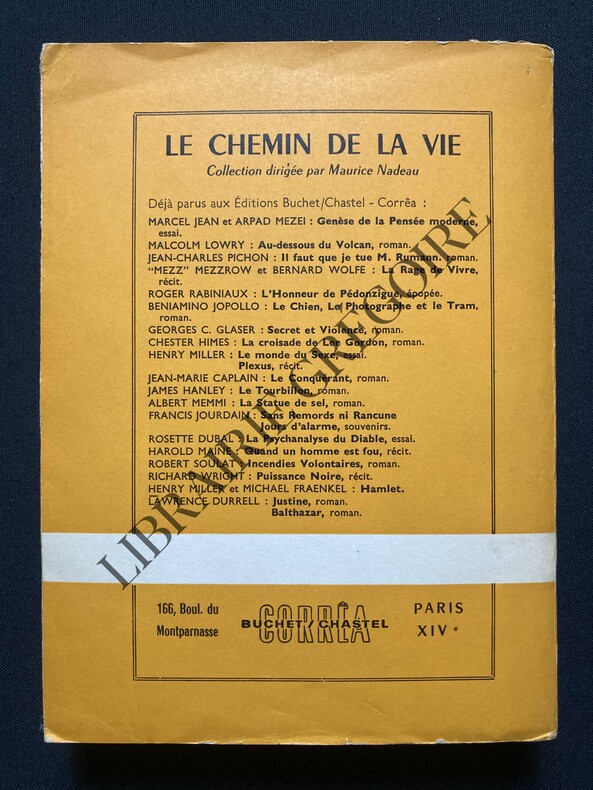 COLLECTION LE CHEMIN DE LA VIE-TRADUIT DE L'ANGLAIS PAR STEPHEN SPRIEL-PREFACE DE MALCOLM LOWRY-POSTFACE DE MAX-POL FOUCHET-376 PAGES-14,5 CM X 19,5 CM-NOM D'APPARTENANCE AU STYLO NOIR EN PAGE 3-(3D)