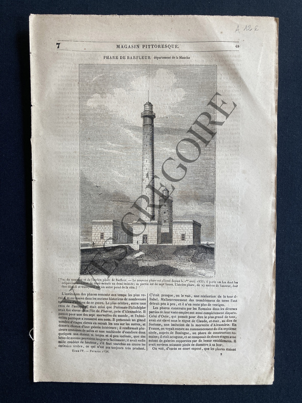 8 PAGES-SANS COUVERTURE-PHARE DE BARFLEUR DEPARTEMENT DE LA MANCHE/GRAVURE-MEURTRE DE GALEAS SFORZA-DE LA RELIURE/2P/5 GRAVURES-LE CARNAVAL/GRAVURE