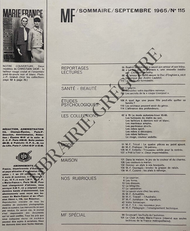 204 PAGES-24 CM X 31 CM-EN COUVERTURE DEUX MODELES DE CHRISTIAN DIOR (PHOTO GRABET)-COLLECTIONS, 18P, PHOTOS LARTIGUE-MODE PRATIQUE, PAR TED LAPIDUS-L'ATTIRANCE DES PROFONDEURS, PAR FRANCOISE DE QUERCIZE, NORBERT CASTERET-COIFFURE: LA COUPE "LIVERPOOL"