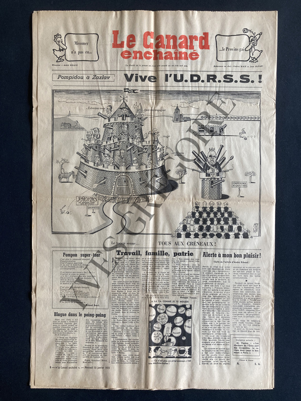 8 PAGES-38 CM X 60 CM-POMPIDOU: UNE CONFERENCE DE PRESSION.-MISSMERALDA (SUITE), PIERRE MESSMER ET MISS FRANCE, GALETTE DES ROIS-A VAL D'ISERE, LA CARTE DES AVALANCHES ETAIT BISEAUTEE-DESSIN DE LAP "PLUS FORT QUE POLNAREFF", MESSMER MONTRANT SES FESSES-CINEMA: NOUS SOMMES TOUS EN LIBERTE PROVISOIRE (DERRIERE LES BOURREAUX), DAMIANO DAMIANI-THEATRE PAR PHILIPPE TESSON: "VICTOR OU LES ENFANTS AU POUVOIR", ROGER VITRAC, JEAN BOUCHAUD, DESSIN DE VAZQUEZ DE SOLA (NADINE ALARI, DIANE KURYS, JULIA DANCOURT, JEAN CHAMPION, PHILIPPE NOEL, FREDERIQUE MEININGER, PIERRE SANTINI)-EN DERNIERE PAGE DESSIN DE MOISAN "LE TOCSIN SONNE.TOUS AUX CRENEAUX!"