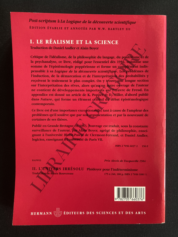 EDITION ETABLIE ET ANNOTEE PAR W.W. BARTLEY III-TRADUCTION DE ALAIN BOYER ET DANIEL ANDLER-428 PAGES-17,5 CM X 24 CM-PORTRAIT PHOTOGRAPHIQUE EN COUVERTURE-(21C)