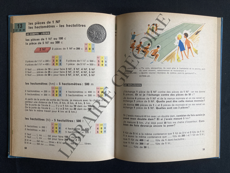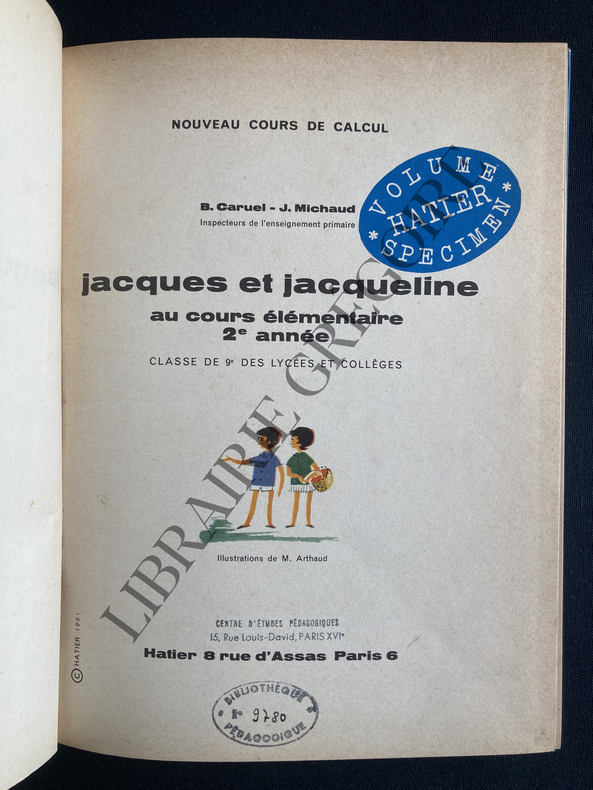 Hatier. 1961. In-8. Relié. Etat passable, Plats abîmés, Dos abîmé, Quelques rousseurs. 159 pages. Dessin en couleur en page de titre. Illustré de nombreux dessins en couleur. Dos manquant. Plats et quelques pages se détachant. Annotation au dos du 1er plat. Traces de scotch.. . . . Classification Dewey : 372.7-Livre scolaire : mathématiques