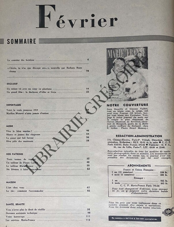 116 PAGES-JEAN DESSAILLY ET SIMONE VALERE EN COUVERTURE-GOYA ET LA DUCHESSE D'ALBE/AVA GARDNER/10P-LA MODE VOYAGE AU TEMPS DES 7 CV-VOUS N'AVEZ PLUS LE DROIT DE VIEILLIR-AU BALCON DE MARIE FRANCE-MARILYN A PEUR/7P