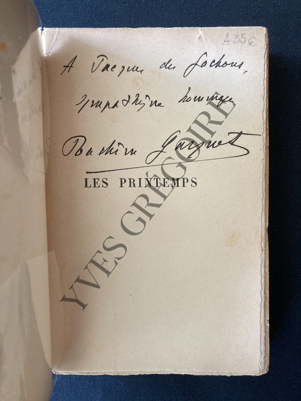 200 PAGES-RECUEIL DE POEMES-"PRINTEMPS MYSTIQUE PRINTEMPS PAIEN PRINTEMPS FUNEBRE-ENVOI DE L'AUTEUR AU ROMANCIER ET CRITIQUE LITTERAIRE JACQUES DES GACHONS-MANQUE (5CM) AU DOS-PETITS MANQUES EN PLATS-INTERIEUR FRAIS-EXEMPLAIRE A RELIER (JDG12)