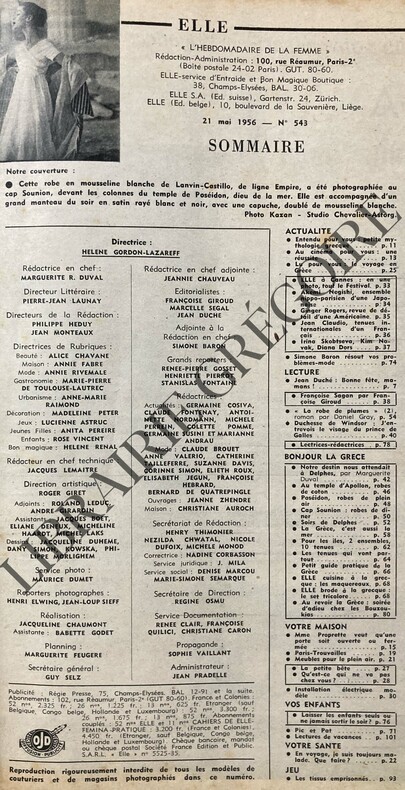 116 PAGES-EN COUVERTURE ROBE DE LANVIN CASTILLO-PUBLICITE COULEURS PIERRE SIMON POUR VALISERE-EN UNE PHOTO: TOUT LE FESTIVAL/ELLE A CANNES/KIM NOVAK/BARDOT-FRANCOISE SAGAN PAR FRANCOISE GIROUD/PHOTO-BONJOUR LA GRECE!/MODE-LA GRECE C'EST AUSSI LA MER-PUBLICITE BOURGEOIS/SOIR DE PARIS/BORDS DE SEINE