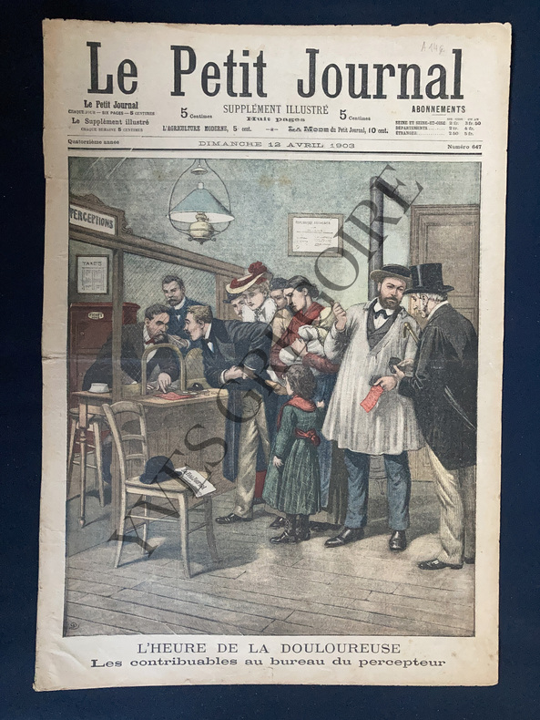8 PAGES-EN UNE:"L'HEURE DE LA DOULOUREUSE LES CONTRIBUABLES AU BUREAU DU PERCEPTEUR"/ILLUSTRATION COULEURS-EN 4: "CIRQUE EMPORTE PAR UNE RAFALE"/ILLUSTRATION COULEURS/SAINT ETIENNE