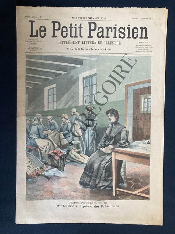 EN UNE: "L'EMPOISONNEUSE DE MARSEILLE MME MASSOT A LA PRISON DES PRESENTINES"/ILLUSTRATION COULEURS-EN 4: "EN ALLEMAGNE. UN DRAME DANS UNE MENAGERIE"/DESSAU/ALLEMAGNE/ILLUSTRATION COULEURS