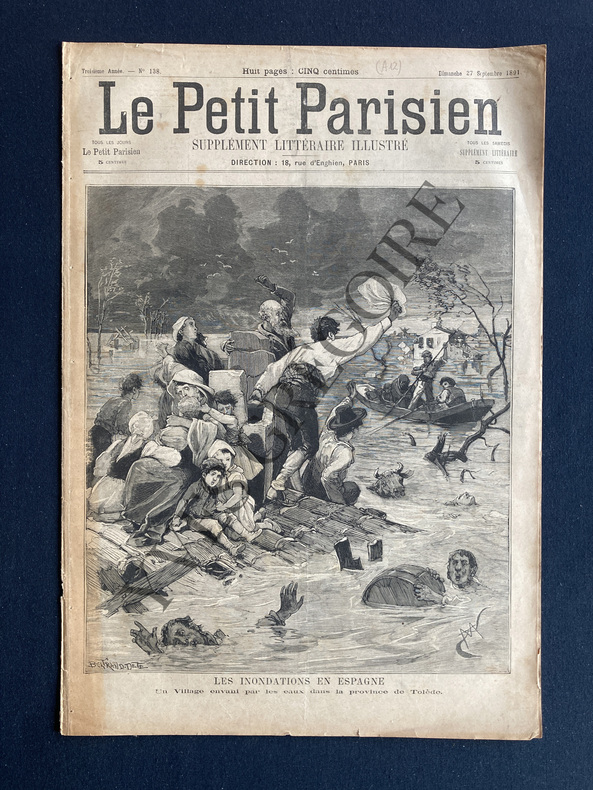 8 PAGES-EN UNE: ILLUSTRATION NOIR ET BLANC "LES INONDATIONS EN ESPAGNE UN VILLAGE ENVAHI PAR LES EAUX DANS LA PROVINCE DE TOLEDE"-"UN SUJET DE PIECE" PAR FRANCOIS COPPEE-EN 4: PORTRAIT DE MLLE VACARESCO