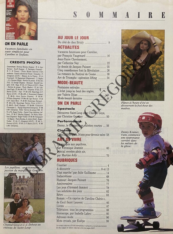100 PAGES-CAROLINE DE MONACO EN COUVERTURE-DU COTE DE CHEZ BRIALY/BERNADETTE LAFONT/ALICE SAPRITCH-VACANCES HEUREUSES POUR CAROLINE-UN SOCIALISTE BLEU BLANC ROUGE PAR CATHERINE NAY/JEAN PIERRE CHEVENEMENT/3P-CINQ COMEDIENNES FONT LA REVOLUTION/JULIE DELPY/PHILIPPINE LEROY BEAULIEU-LA ROMANCE DU FESTIVAL DE CESME/ANTHONY DELON/SABRINA-ARC DE TRIOMPHE OPERATION LIFTING-MODE/FANTAISIES ESTIVALES/8P-DECOUVREZ SAINT LOUP AVEC CHANTAL GOYA/6P/PHOTOS-CINEMA/GINA 34 ANS POUR DEVENIR MERE-LE MARQUIS AUX PAPILLONS/GOULAINE/8P-MOTS CROISES FAITS