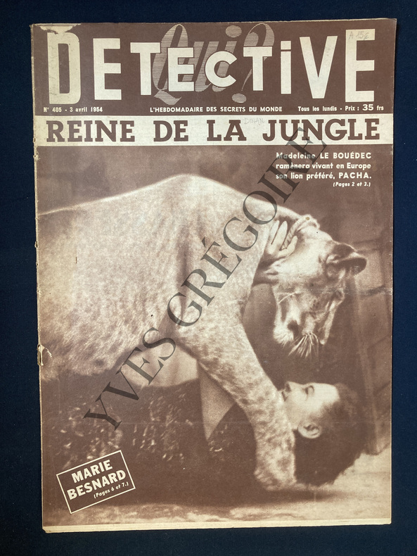 EN COUVERTURE "MADELEINE LE BOUEDEC RAMENERA VIVANT EN EUROPE SON LION PREFERE PACHA"-OYONNAX/CHASSERESSES SANS FUSIL/HENRIETTE 69 ANS ET MADELEINE LE BOUEDEC 24 ANS/2P/PHOTOS-PRES DE SAINT DIE/TRAHIS PAR UNE PAIRE DE MOUFLES/MARCEL CUNY-BORDEAUX/LE LIVRE D'HEURES DU PROCES MARIE BESNARD/2P/12 PHOTOS-CET AMUSANT CHAPEAU EST UNE RECLAME COMMERCIALE/IRIS BYLETH/PHOTO-SAHARA/LES PIONNIERS DE L'OR NOIR-DINAN/LE VALET TROP AIME/MARCEL CRETE 19 ANS EST POUSSE AU CRIME PAR SA MAITRESSE ANGELE GROSSET 45 ANS/2P/10 PHOTOS-CANNES/RESSUSCITE PAR LE FROID/LOUIS BALDACCI/2P/4 PHOTOS-LE PAPE DES GLACIERS/PIERRE BLANC/2P/11 PHOTOS-TOULON/UNE FUSILLADE CHEZ LES LAVANDIERES/TEULET TENANCIER DU SULLY/1P/6 PHOTOS-MARSEILLE/FRANCIS ANASTASI 20 ANS COUREUR CYCLISTE ET CHAMPION AU COEUR PUR/4 PHOTOS-SAUMUR/DANS UN LINCEUL DE SABLE/HERMANCE GOGLET/4 PHOTOS-TROP SOUVENT LA HONTE ET LA MORT PONCTUENT LES "JEUX" CRUELS DE LA JEUNESSE/LA FIN TRAGIQUE D'ERIC MALAN-EN 4 DE COUV/ "SIRENES A TROIS ROUES"/CHARIOT A VOILE/3 PHOTOS-UN TROU D'INSECTE DE PART EN PART-LEGER MANQUE EN MARGE SUP. DE UNE
