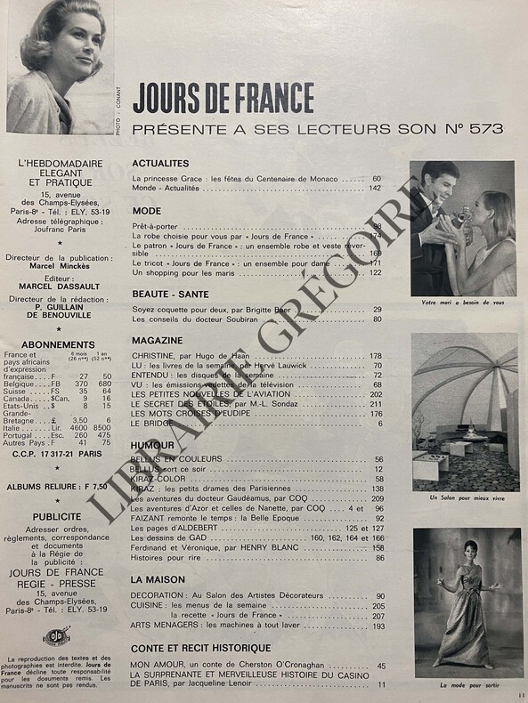 208 PAGES-LA PRINCESSE GRACE DE MONACO EN COUVERTURE-LA SURPRENANTE ET MERVEILLEUSE HISTOIRE DU CASINO DE PARIS PAR JACQUELINE LENOIR/23 L'INCENDIE DU CASINO/PHOTOS-1966: L'ANNEE D'OR DE LA PRINCESSE GRACE-ALAIN DELON AU PRESIDENT CHABAN DELMAS: "VOUS ETES FORMIDABLE!"/2P/PHOTOS-L'AMERIQUE NE VEUT PLUS NOUS RENDRE AZNAVOUR/2P/5 PHOTOS-LES POLICEMEN DE LONDRES ONT CRIE: "AU SECOURS"/BEATLES/2P/4 PHOTOS