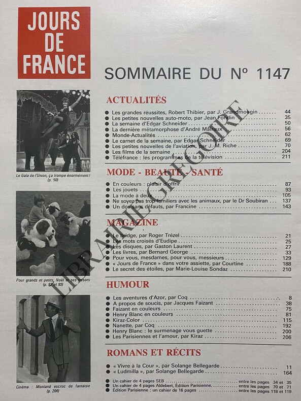 EN COUVERTURE "HOMMAGE A MALRAUX"-LES GRANDES REUSSITES/ROBERT THIBIER DECORATEUR/3P-LA SEMAINE D'EDGAR SCHNEIDER/GALA DES ARTISTES/REGINE SANS BOA/MME KOSCIUSKO MORIZET/PAUL NEWMAN/PHOTO-LA DERNIERE METAMORPHOSE D'ANDRE MALRAUX PAR ANDRE BRINCOURT/6P-CLO CLO SOUS L'OEIL DE MARC ET COCO/2P/3 PHOTOS-LES JOUETS/3P-CINEMA/CRITIQUES POUR LE GRAND ESCOGRIFFE/3 PHOTOS ET LA PREMIERE FOIS/PHOTO