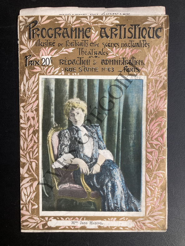 THEATRE DU GYMNASE-IN 8-COUVERTURE ILLUSTREE COULEURS/PORTRAIT DE JANE HADING-GALIPAUX-DUBOSC-FREDAL-PHOTOS-PUBLICITES (CPT1)