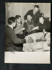 TIRAGE ARGENTIQUE NOIR ET BLANC-18 CM X 24 CM-MENTION MANUSCRITE AU DOS: "LES DERNIERES MINUTES DE SON REPAS SONT DEJA CONSACREES A SON TRAVAIL ET A SES COLLABORATEURS"-CACHET HUMIDE AU DOS "PHOTO REPORTAGE YAN J. DIEUZAIDE TOULOUSE"-REPORTAGE N°8319-LEGERE PLIURE ANGLE SUP DR (CP8)