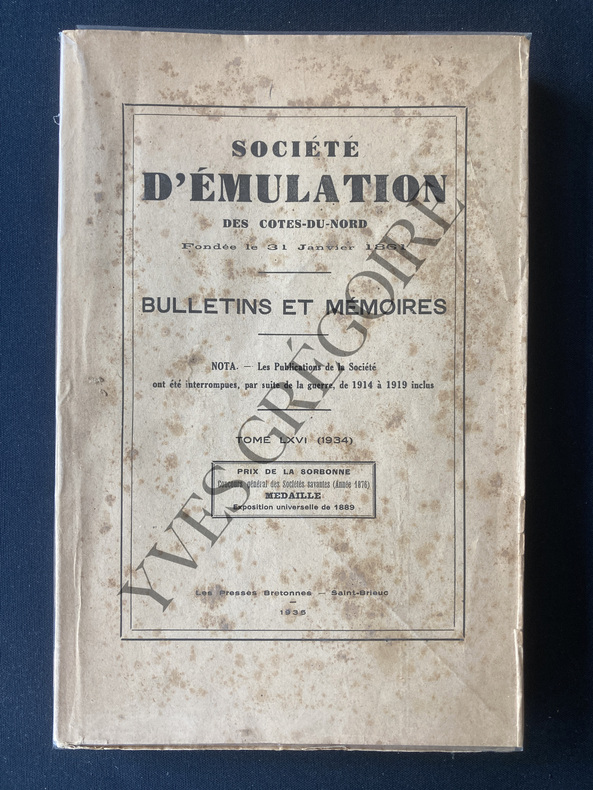 BROCHE IN 8-242 PAGES-LISTE DES MEMBRES-L'ANNEE 1934 A LA SOCIETE D'EMULATION DES COTES DU NORD-LA TROISIEME CHOUANNERIE-DANS LE SILLAGE D'UNE PETITE CHOUANNE-JULES DE SAINT CAST COURRIER DES PRINCES/GABRIEL MACE-LES COSTUMES BRETONS-NON COUPE-QUELQUES ROUSSEURS SUR LE 1ER PLAT-(17C)