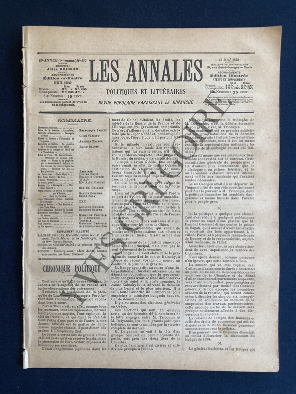 PORTRAITS CONTEMPORAINS/HOMMES D'ETAT JAPONAIS: OTORI ET YAMAGATA-ETUDES ET CROQUIS/PHILOSOPHIE DE LA GUERRE PAR ANATOLE FRANCE-SOUVENIRS DE THEATRE/LA PREMIERE REPRESENTATION DU TANNHAUSER EN 1961/4COL-MON FRANC PARLER PAR FRANCOIS COPPEE-LES CLOCHES/NOUVELLE PAR G. D'ANNUNZIO