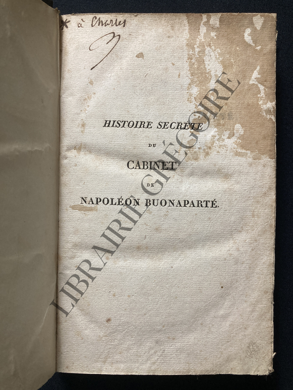 Chez les Marchands de Nouveautés. 1814. In-8. Broché. Etat d'usage, Plats abîmés, Dos abîmé, Quelques rousseurs. 275 pages. Quelques traces de mouillures sans conséquences sur le texte. Plats d'attente; 1er plat annoté à l'encre et déchiré. Manques en coiffes.. . . . Classification Dewey : 944.051-Histoire de Napoléon 1er