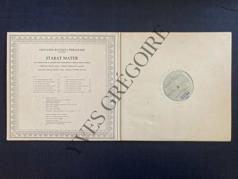 MIRELLA FRENI, SOPRANO-TERESA BERGANZA, CONTRALTO-SOLISTES DE L'ORCHESTRE SCARLATTI, NAPLES-DIRECTION: ETTORE GRACIS-EN COUVERTURE: CRUCIFIXION PAR ANDREA PREVITALI-PRESENTATION DE VOLKER SCHERLIESS-STEREO-QUELQUES ROUSSEURS-DISQUE A L'ETAT DE NEUF
