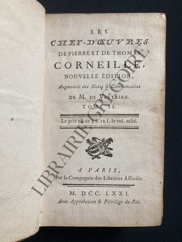 Contient : La mort de Pompée, Rodogune, Héraclius, Nicomède. Tome II seul.