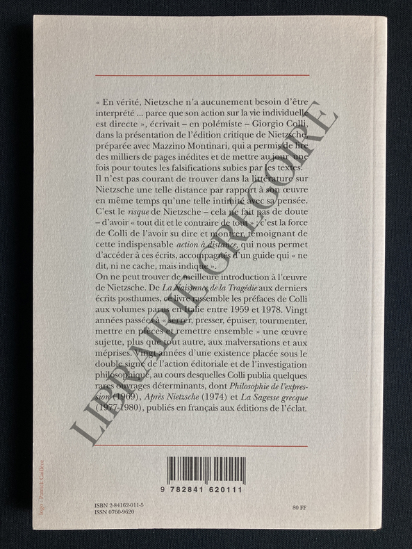 Avant-propos de Michèle Cohen-Halimi. Trad. de Michèle Cohen-Halimi, Hélène Poitevin et Max Marcuzzi. Classification Dewey : 840.091-XX ème siècle
