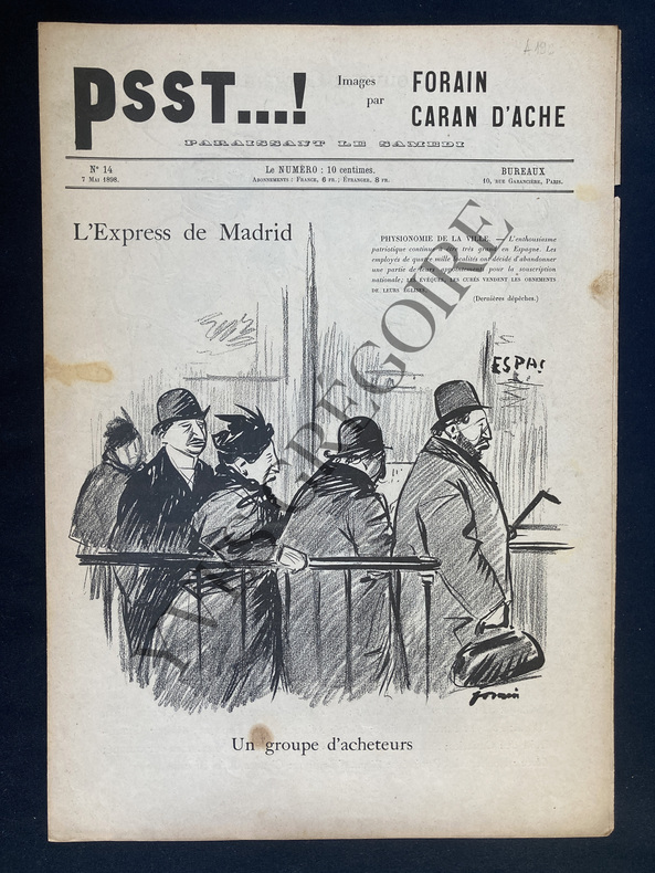 4 PAGES IN FOLIO-COUVERTURE DE FORAIN/"L'EXPRESS DE MADRID UN GROUPE D'ACHETEURS"-P2 CARAN D'ACHE/"NOUVEAU GARGANTUA"/ONCLE SAM-P3 CARAN D'ACHE/"GARGANTUA (SUITE)"/ONCLE SAM-P4 CARAN D'ACHE/"LE 7e LEGER AMERICAIN"