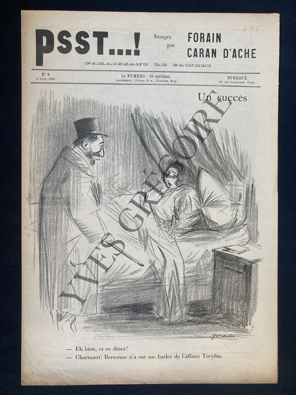 4 PAGES IN FOLIO-COUVERTURE DE FORAIN/"UN SUCCES"/"BERSONNE N'A OSE ME BARLER DE L'AFFAIRE TREYFUS"-P2 2 DESSINS DE CARAN D'ACHE/RENARD AFFAIRE DREYFUS-P3 CARAN D'ACHE/"LA SITUATION HISPANO AMERICAINE"/TAUROMACHIE-P4 CARAN D'ACHE/"LE VERITABLE AMATEUR"