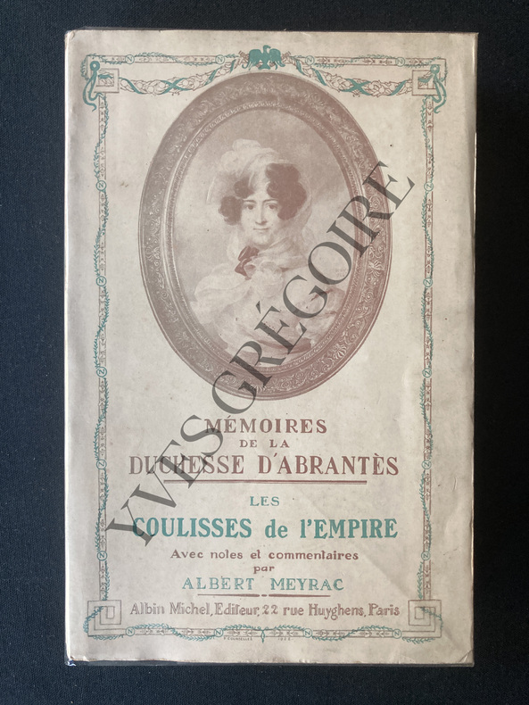 Édition complète en 4 volumes. — Née en 1784, Laure de Saint Martin Permon (1784-1838) se trouve, dès l'enfance, mêlée aux événements tragiques de la Révolution. Élevée à la manière de l'Ancien Régime par un père et une mère attachés aux traditions, elle devient à seize ans l'épouse d'un général républicain, Junot, aide de camp et favori de Napoléon Bonaparte que sa famille et elle-même ont intimement connu dès sa jeunesse. Tour à tour, épouse du Gouverneur militaire de Paris, ambassadrice au Portugal aux côtés de Junot fait Duc d'Abrantès par l'Empereur, témoin direct des horreurs de la guerre d'Espagne, maîtresse de Metternich, ambassadeur d'Autriche à Paris, elle vit au plus près chaque instant de l'épopée consulaire et impériale. Veuve et ruinée à la chute de l'Empire, elle n'en joue pas moins un rôle éminent sous la Restauration. Elle se met alors à écrire et ses mémoires, parus de 1831 à 1835, connaissent un succès prodigieux. Toujours le destin l'a placée ou il le fallait, et, vingt ans plus tard elle restituera ce vu et ce vécu en un récit touffu, décousu, passionnant. Avec un dédain superbe de la chronologie, elle va, vient, vagabonde, anticipe, retourne en arrière, ressuscite le passé. Témoin irremplaçable de l'épopée consulaire et impériale, elle plante le décor, brosse une fresque immense, fourmillante de petits faits pris sur le vif, de détails piquants, de portraits malicieux qui donnent le ton de l'époque et lui restituent sa saveur première. Il faut dire qu'à presque chaque page s'y profile la silhouette de Napoléon. Elle l'a vu penché sur son berceau, elle a suivi de près son ascension, elle lui doit sa fortune, sa gloire, son nom même. Qui mieux qu'elle pouvait peindre Napoléon ? — “Célèbres mémoires qui doivent beaucoup à Balzac et dont Chateaubriand, Victor Hugo et Alexandre Dumas firent grand cas. C’est dire le prestige de ces souvenirs riches en anecdotes curieuses et en portraits piquants.” (Tulard, 5) — "Les travailleurs appliqués à l'histoire du Consulat et de l'Empire savent le crédit qu'il faut accorder aux Mémoires de la duchesse d'Abrantès – ou plutôt qu'il ne faut pas leur accorder, mais ce n'est point à eux que s'adresse la présente édition, destinée, semble-t-il, à un public qui apprécie surtout dans l'histoire, les historiettes d'alcôve." (Jean Bourdon, Revue d’Histoire moderne et contemporaine, 1929)