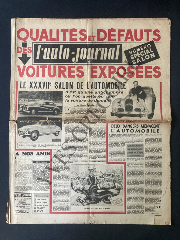 12 PAGES-EN UNE: QUALITES ET DEFAUTS DES VOITURES EXPOSEES/SALMSON/PHOTO/CARROSSERIE GRAND LUXE SUR VOITURE TALBOT/PHOTO-LE POUR ET LE CONTRE/FORD VEDETTE/CITROEN 15/SALMSON S4 E/RENAULT 4 CV/DYNA PANHARD/CITROEN 2 CV/203 PEUGEOT/CITROEN 11/SIMCA 1200/PHOTOS-VEHICULES UTILITAIRES-PRODUCTION ETRANGERE/PHOTOS-NOTRE OPINION SUR LA 4 CV RENAULT GRAND LUXE/1P/2 PHOTOS/2 DESSINS-ANGLE INF DR DE UNE MANQUANT (11 CM X 4,5 CM)-PLIURE CENTRALE DE UNE FRAGILISEE