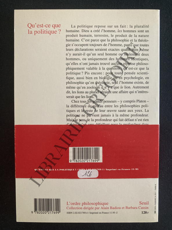 Collection Points Essais n°445 - Texte établi par Ursula Ludz - Traduction de l'allemand et préface de Sylvie Courtine-Denamy. Classification Dewey : 320-Science politique